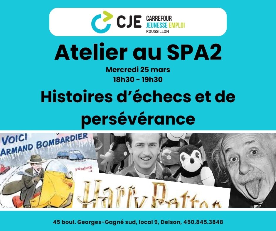 Ils ont tous connu des refus, des erreurs et des portes fermées. Ce qui a fait la différence? Ils ont persévéré. Viens découvrir leurs parcours inspirants et trouver l’élan pour écrire le tien! Un atelier motivant pour te rappeler que l’échec fait partie du chemin vers le succès.